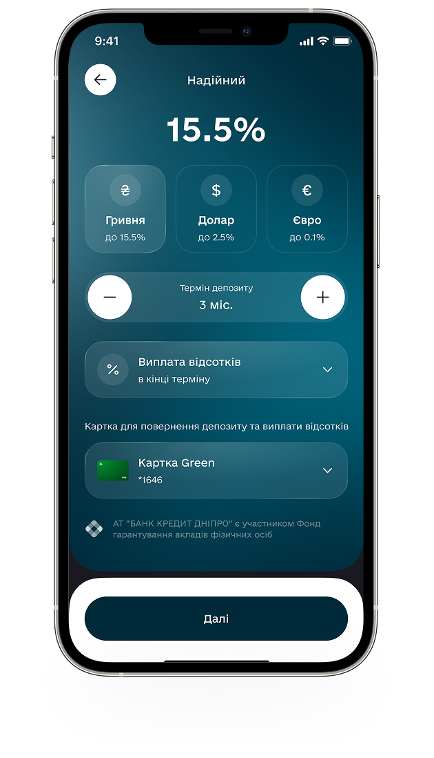 Банк Кредит Дніпро є учасником Фонду гарантування вкладів фізичних осіб.
