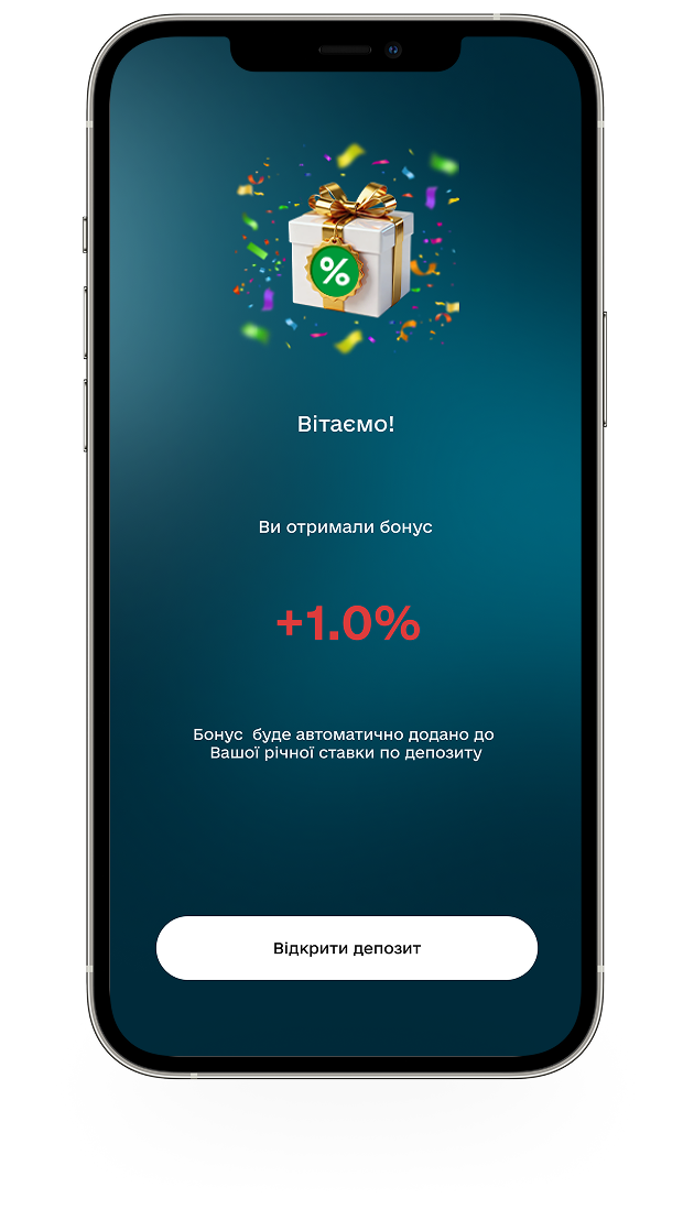 Ви відкриваєте вклад – ми даруємо шанс збільшити його прибутковість. Натапайте свій бонус до депозиту. Скористайтесь унікальною можливістю отримати більше.